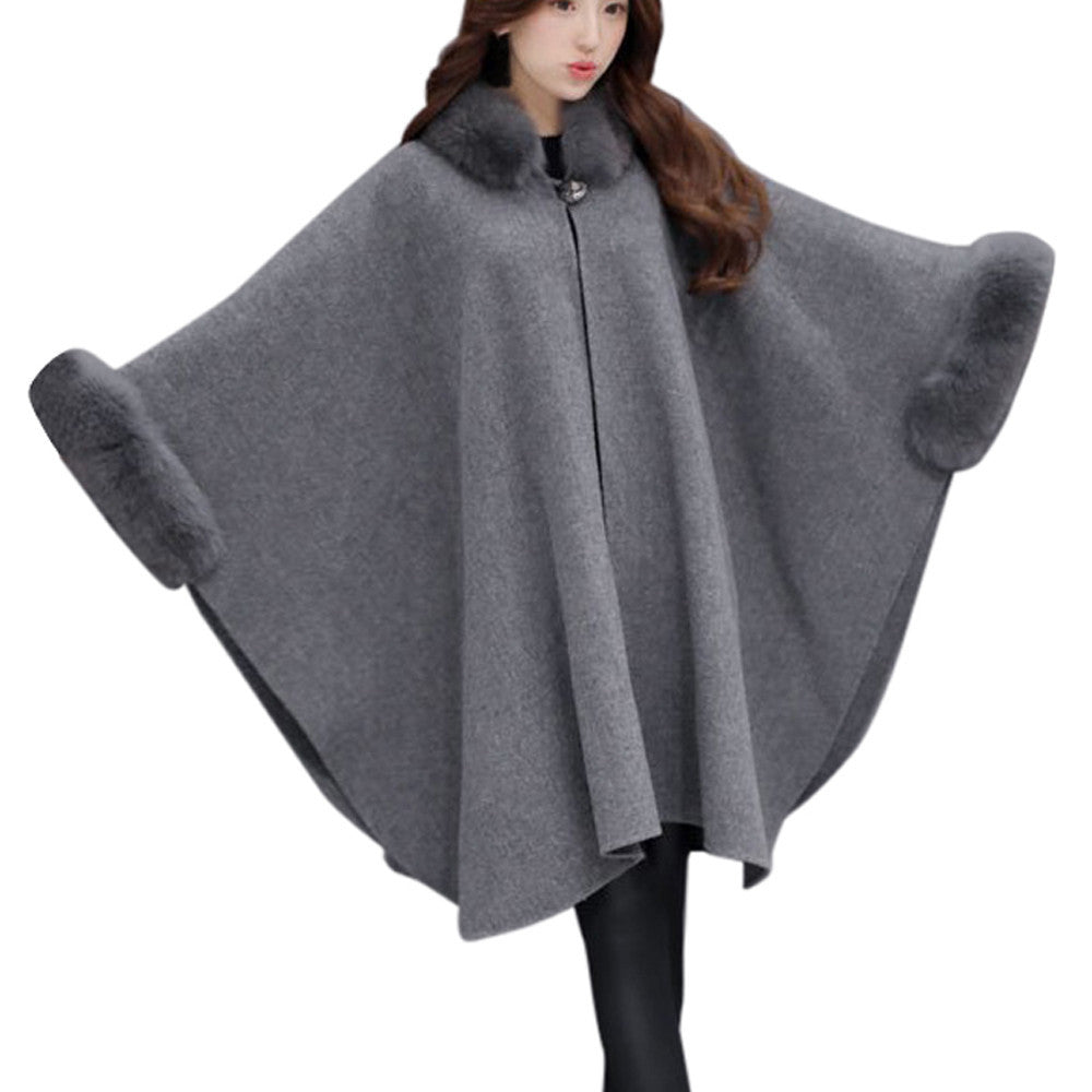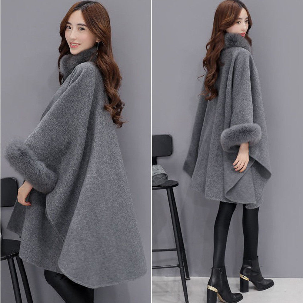 Fashion Women Jacket Casual Woollen Outwear Fur Collar Parka Cardigan Cloak Coat